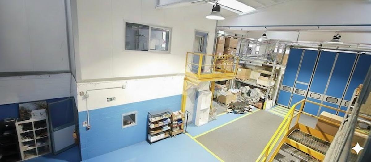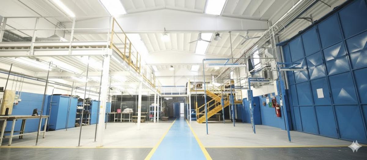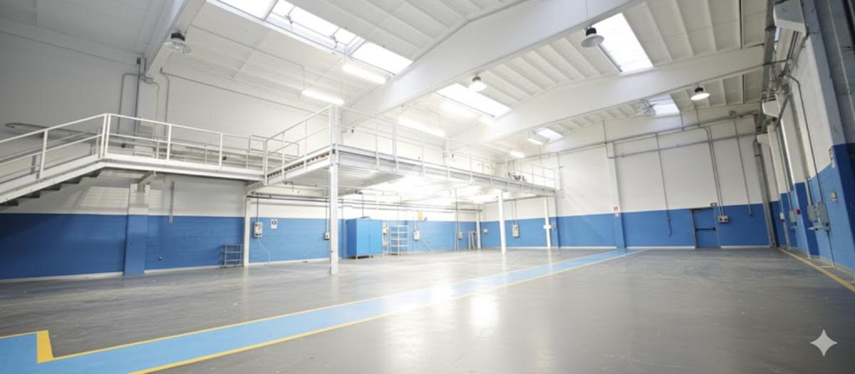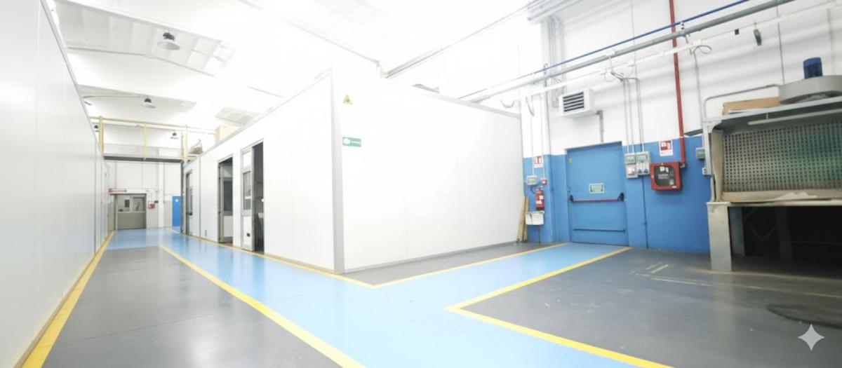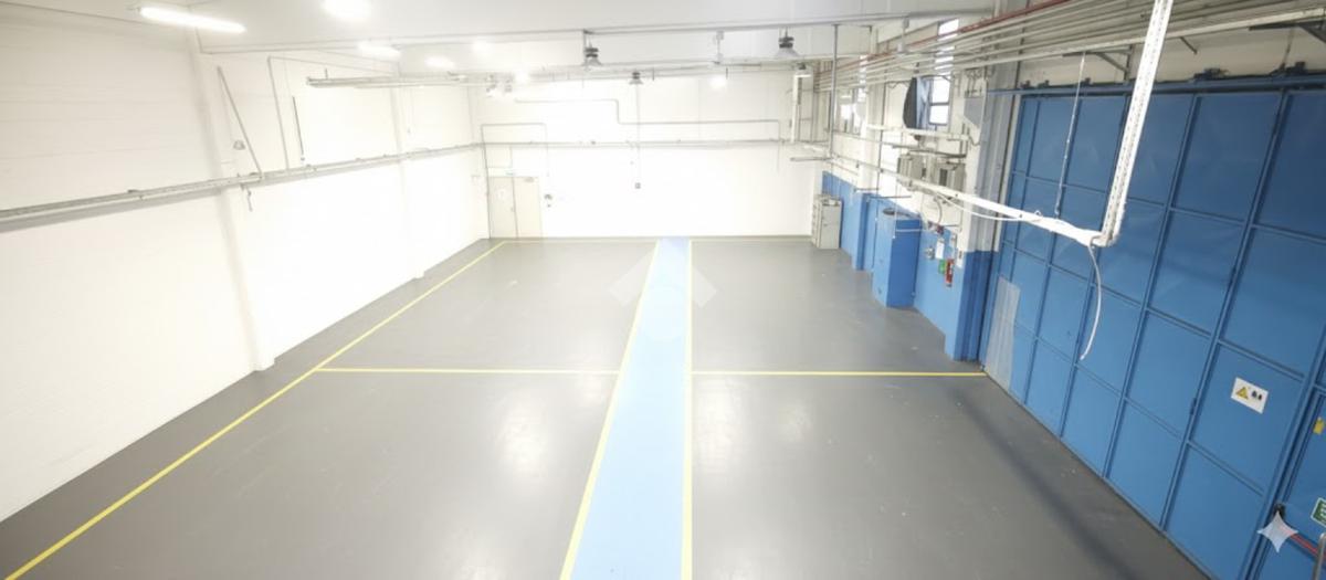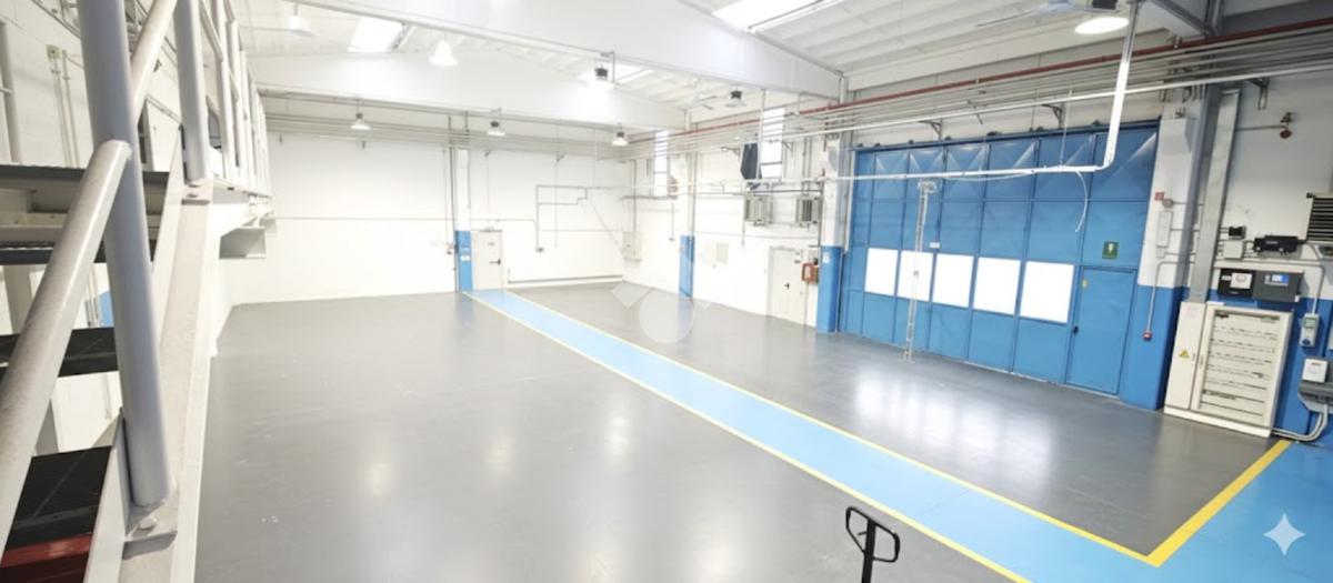 Il piano terra ha una metratura di 1000 mq così suddivisi: 850 mq di area produttiva con altezza di 7 metri, 65 mq tra servizi interni m/f di cui uno con doccia, spogliatoi e 85 mq di zona uffici.